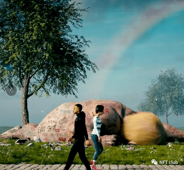 Crossroad是由著名的数字艺术家Beeple创建的NFT,该数字艺术品所的特点是传递一种“反特朗普”思想,作品中有一个像唐纳德·特朗普一样的大人物,但却被“打败”躺在地上,他的裸体也被“亵渎”,上面画了各种各样的记号。
