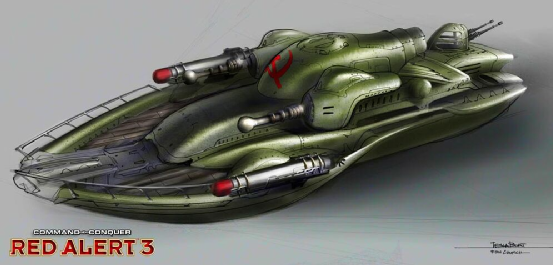 在之后的几次更新中,磁暴快艇的功能变得越来越完善,在最新的版本里,磁暴快艇甚至能够登上陆地,实现水陆两栖作战,这或许也是苏联为什么很长一段时间里没有再继续磁暴坦克的研究的原因。造型上看这就是普通的快艇加了两个小型磁暴线圈,现实中连磁暴线圈都没有,自然也没有磁暴快艇。![]()