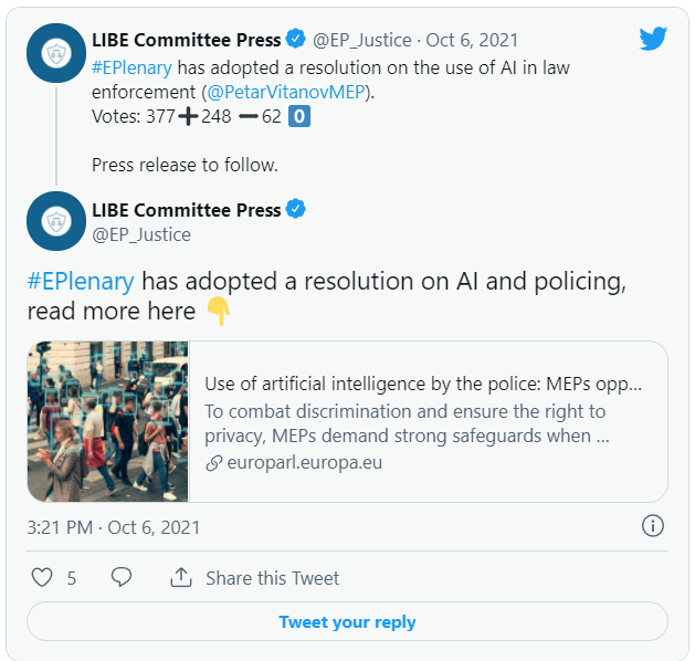 昨日,欧洲议会投票通过决议,呼吁全面禁止基于AI生物识别技术的大规模监控。此次决议呼吁全面禁止在公共场所进行自动面部识别,并对警方使用AI进行预测性警务活动实施严格限制措施。欧洲议会以 377 票赞成、248 票反对、62 票弃权的结果通过了决议。决议还呼吁禁止使用私人面部识别数据库,并表示基于行为数据的预测性警务活动也应该被取缔。此外,决议还希望禁止试图根据公民的行为或个性,对公民的信用进行评分的社会评分系统。对于远程生物特征监测的AI技术,委员会在报告中呼吁:「……通过立法和非立法手段,必要时通过侵权诉讼,禁止出于执法目的生物识别数据处理,包括通过面部图像识别,在公共场所进行大规模监视。」欧洲议会成员Petar Vitanov在决议通过后的声明中表示:「人类的基本权利是无条件的。我们有史以来第一次呼吁暂停部署用于执法的面部识别系统,因为该技术已被证明是无效的,并且经常导致歧视性结果。这份报告对所有欧洲公民来说都是一个巨大的胜利。」