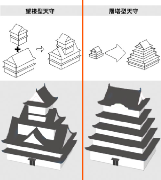 从天守的主体建筑来看,天守分为初期的望楼型以及后期的层塔型。望楼型是在一座入母屋形式的大型建筑上再构筑一个望楼建筑,大小与造型与下方的建筑有较为明显的区别;而层塔型则是在正方形的天守台上层层加盖,每层缩进一定距离,如此每层的形状都一样。纳米主机的设计灵感,应该就是层塔型天守。![]()