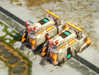 整体造型上看,帝国建造厂其实与盟军苏联差不多,虽然盟军苏联不需要生产纳米核心这样的车辆,但是车辆进出口还是做了出来。![]()