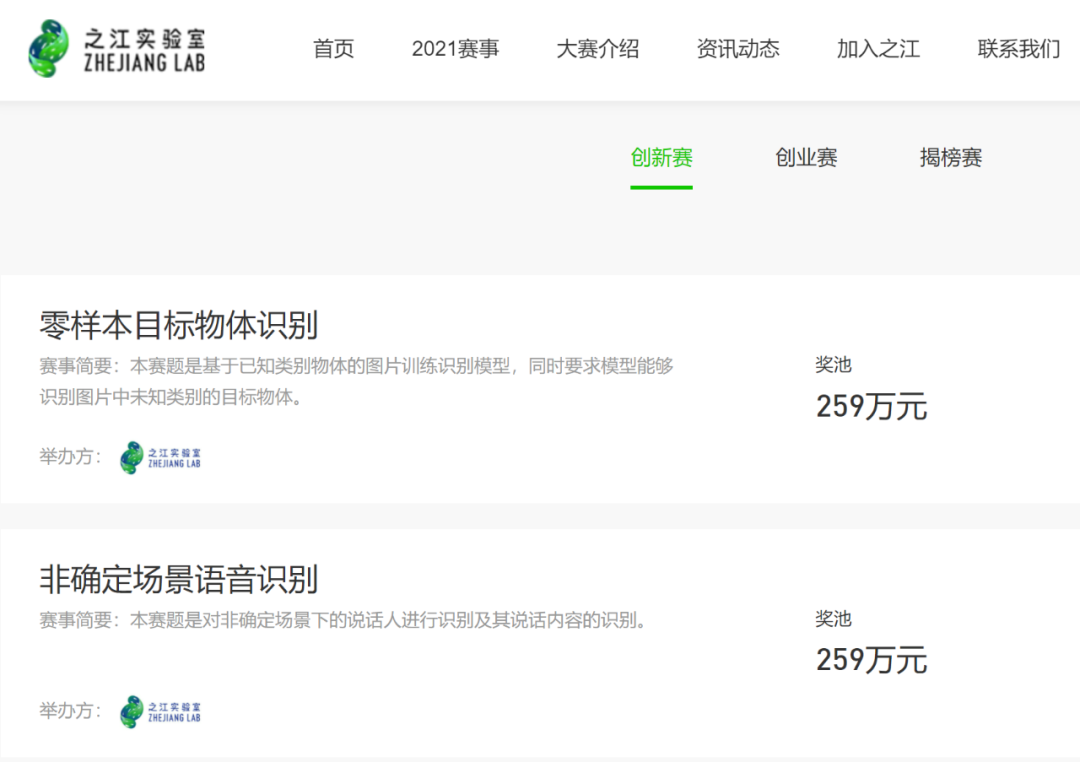 为推动人工智能技术发展,之江实验室、中国人工智能产业发展联盟、杭州市人民政府共同主办了一场面向全球的人工智能赛事——2021之江杯全球人工智能大赛,设创新赛、揭榜赛、创业赛三个赛道,共2000万总奖池,以发掘人工智能领域优秀人才,加快打造人工智能创新高地。