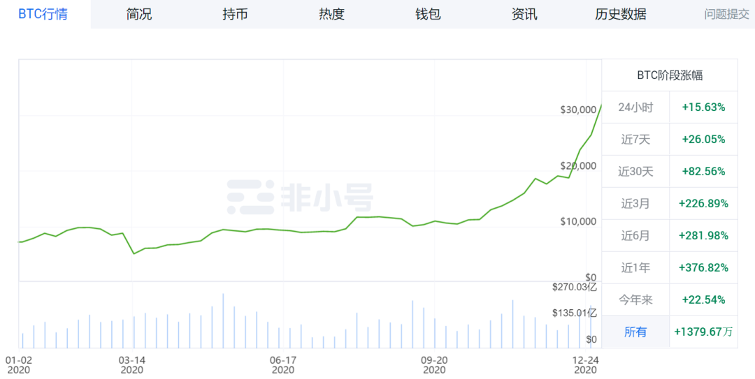 现在,随着比特币价格终于突破3万美元,预计2021年的牛市可能会以更强劲的势头开始。作为回应,投资者可能会将加密货币视为一个长期投资机会。另一方面,我们可能会看到抛售和回调。无论如何,不可否认的是,比特币已经进入了下一个周期,一轮反弹正在进行中。从过去的数据和过去十年代币的历史走势来看,这一趋势表明加密货币行业作为一种有价值的储值手段正面临着重大机遇。