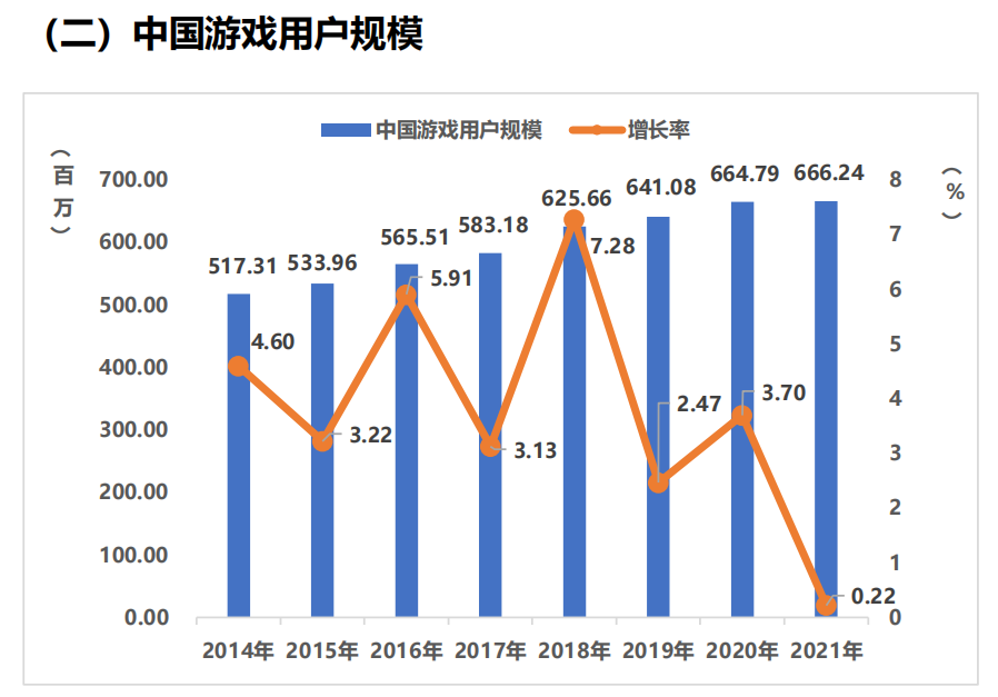 2021年中国移动游戏用户规模达6.66 亿人,同比增长仅为0.22 %,较 2020年末增长不足200万人,用户存量市场特征明显。伴随人口红利消失,游戏市场产品数量增长,买量竞争也愈加剧烈,一些重度游戏如策略类单个用户成本高达数百元,流量成本激增。