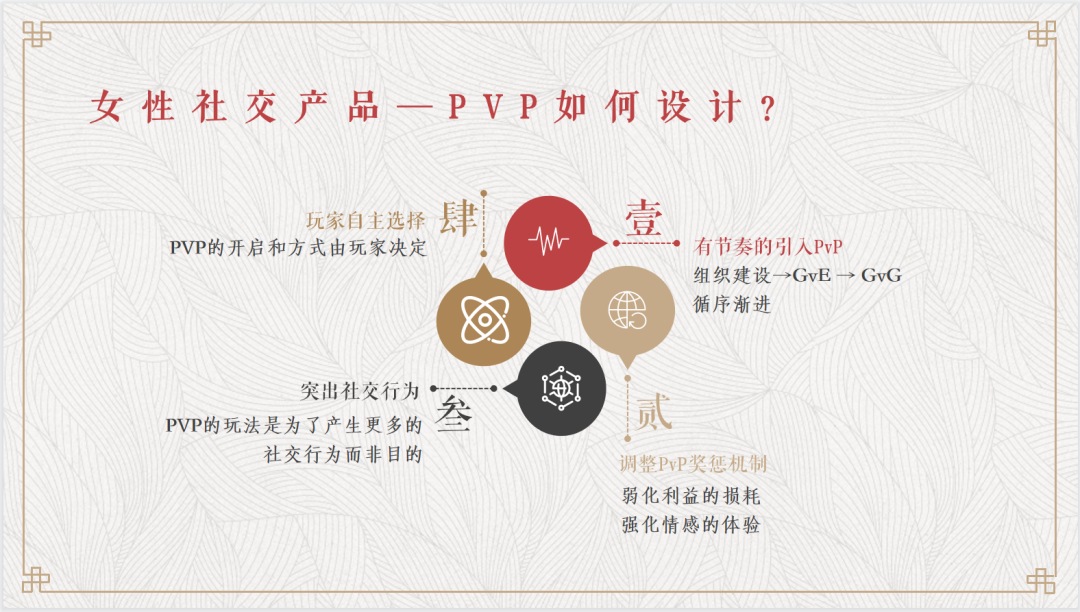 做好存留设计后,PVP如何设计?我们说女生也玩PVP。那么做女性PVP游戏,如何有节奏地引入PVP?